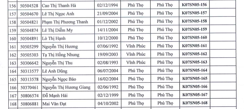 Danh sách lao động Phú Thọ tham gia giáo dục định hướng Khoá K07-SN05/2026