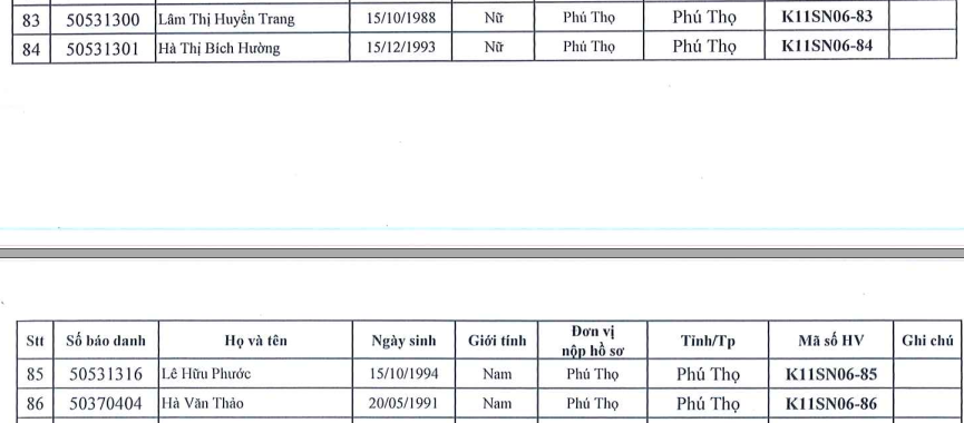 Danh sách lao động Phú Thọ tham gia kế hoạch đào tạo định hướng khoá K11-SN06/2026