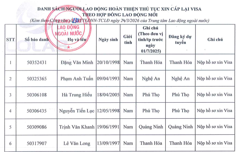 Danh sách lao động Phú Thọ hoàn thiện thủ tục xin cấp lại visa theo hợp đồng lao động mới